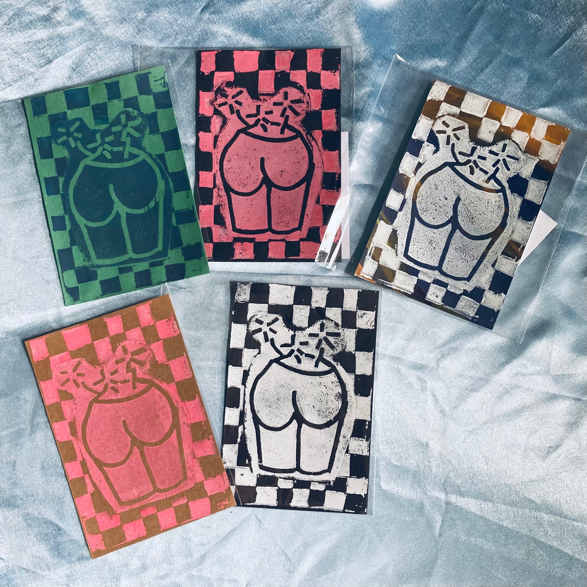 Each print is unique and hand printed with a linoleum block print I carved by hand.