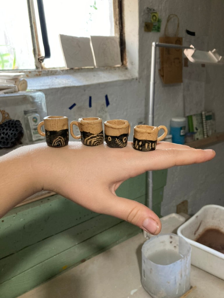 From left to right: Abstract pinecone, Acorn, Tiny mug, Organic Boomarang, Mushroom, Moon, Mountain, Snowflake. Mix n' match for a lovely little collection.